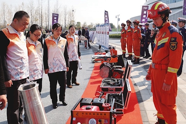 11月5日,2025年“119”消防宣传月开幕式结束后,市民参观消防科普区、进行灭火器实用培训,并进入科普教育基地埋头学习消防知识。 (随州日报传媒记者 李文军 供图)