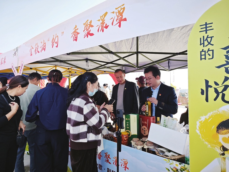 山茶花开,山茶果压枝头。凉爽的金秋时节,占地万亩的油茶果园举办油茶采摘大赛、创意油茶种子艺术展、菌类疫苗接种、烹饪技能大赛等活动。乡村里歌舞升平,村民们举行仪式,以各种方式庆祝山茶花的丰收。 11月4日,随县长谷市龚家湾村茶花文化园举办茶花采摘活动,现场热闹非凡。