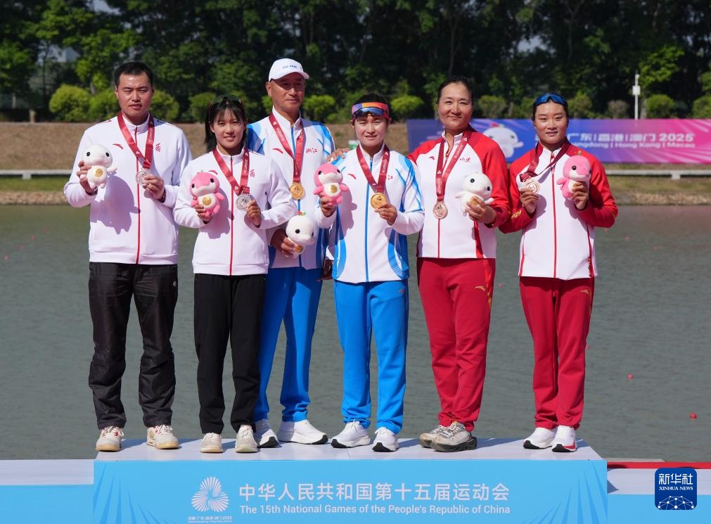 11月17日,冠军浙江队选手王楠(右三)、山西队亚军张露茜(左二)、山东队季军应梦迪(右一)及教练员出席颁奖仪式。当日,第十五届全国静水皮划艇比赛女子500米皮划艇个人决赛在广州举行。新华社供图 晋美多吉11月17日,浙江优胜队球员王楠(右)及教练出席颁奖仪式。当日,第十五届全国静水皮划艇比赛女子500米个人皮划艇决赛在广州举行。新华社供图 晋美多吉11月17日,浙江省队运动员王楠(右)参加女子500米皮划艇个人A级决赛,最终获得冠军。当日,第十五届全国静水卡亚赛女子500m个人皮划艇决赛k大赛在广州举行。新华社杨诗瑶供图 11月17日,代表浙江省参加女子500m皮划艇个人A级决赛,最终获得冠军。当日,第十五届全国静水皮划艇比赛女子500米个人皮划艇决赛在广州举行。新华社供图 晋美多吉11月17日,浙江省队运动员王楠(前)参加女子500m皮划艇个人A级决赛,最终获得冠军。当日,第十五届全国静水皮划艇比赛女子500米个人皮划艇决赛在广州举行。新华社记者 杨诗瑶 供图。